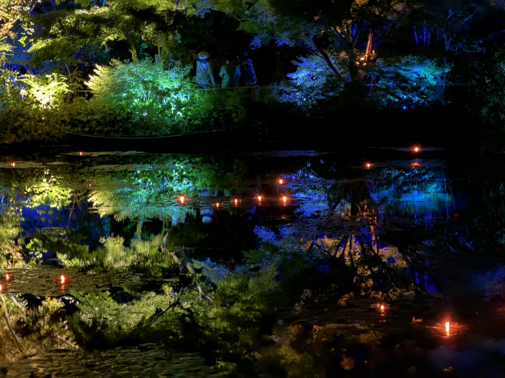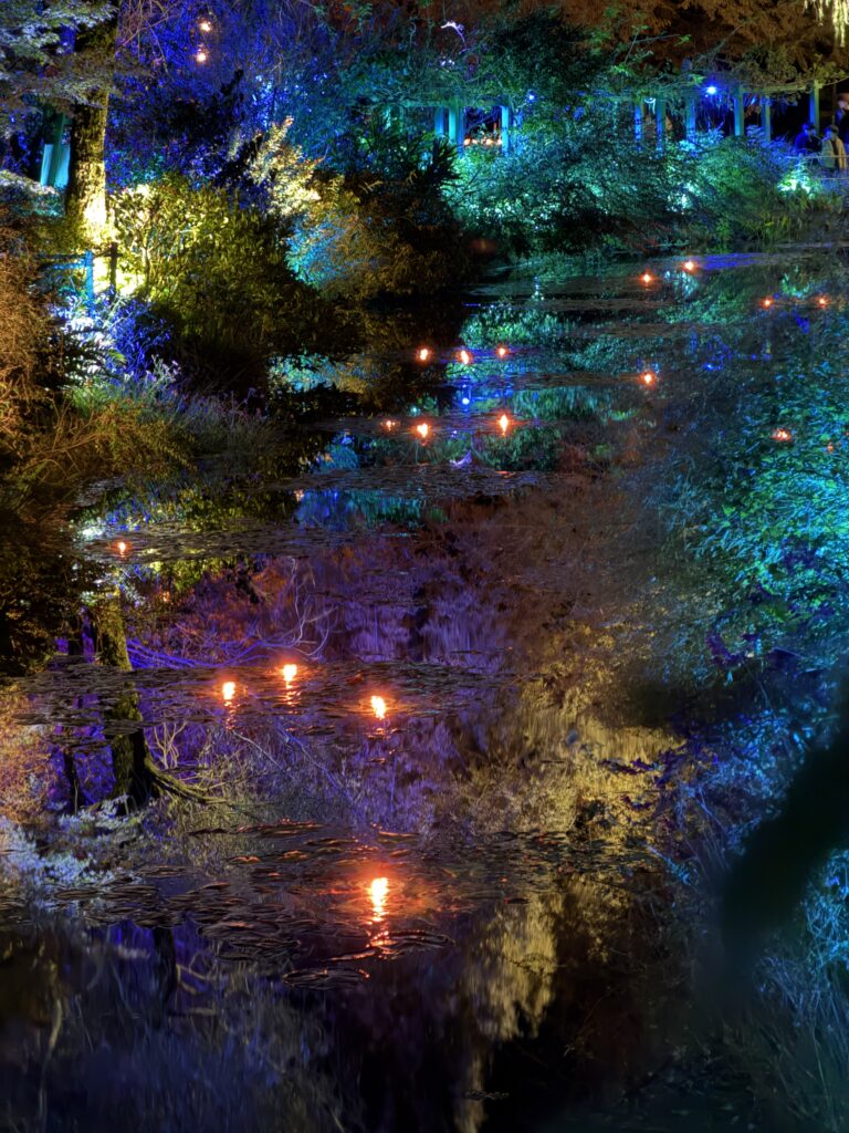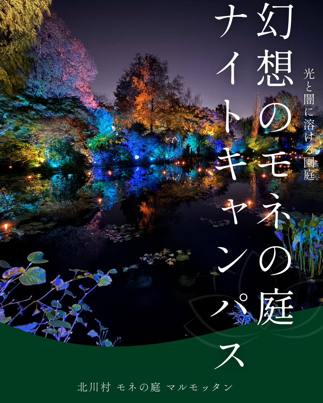 高知県北川村にある「モネの庭 マルモッタン」で開催されるナイトキャンパスは、昼間の庭とはまったく別の“作品”です。太陽の光に包まれた庭ではなく、夜というキャンバスに描かれる光と水、そして静寂。そこには、昼では決して見られない、もう一つの表情が存在します。