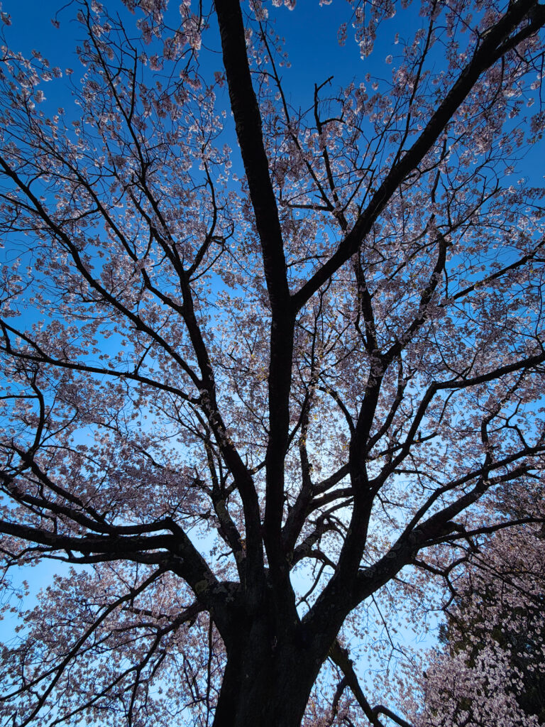 天気にも恵まれ青空のもと咲き誇る桜の花が綺麗で、時より風が吹き揺れる花・枝から生命感が伝わってきて元気をもらうことができました。