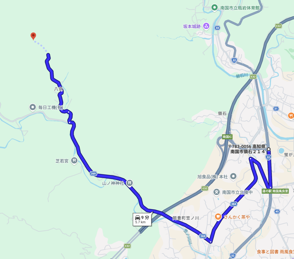 高知県南国ICから10分ぐらいでナビゲーションが示す場所に着きます。