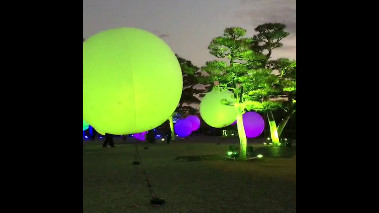 城内に丸や卵型の光の風船がフワフワしているのは不思議な感じでした。